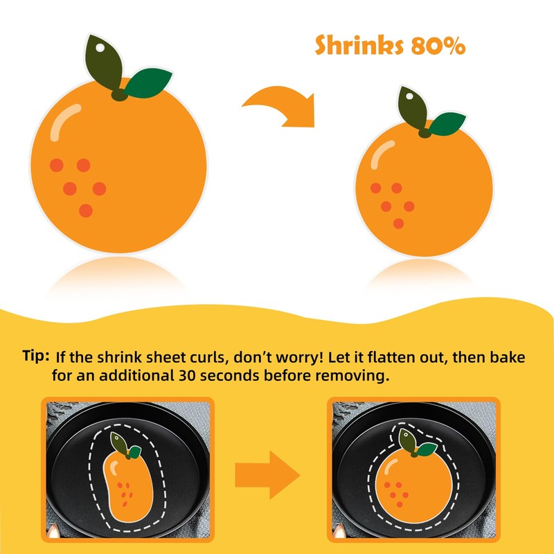 - Easy to use: Unleash your creativity with our shrink film for crafting by hand. Simply draw on the matte side with any pen, cut out your design with scissors and watch the shrink sheet shrink perfectly for children in your oven or with a hot air gun.