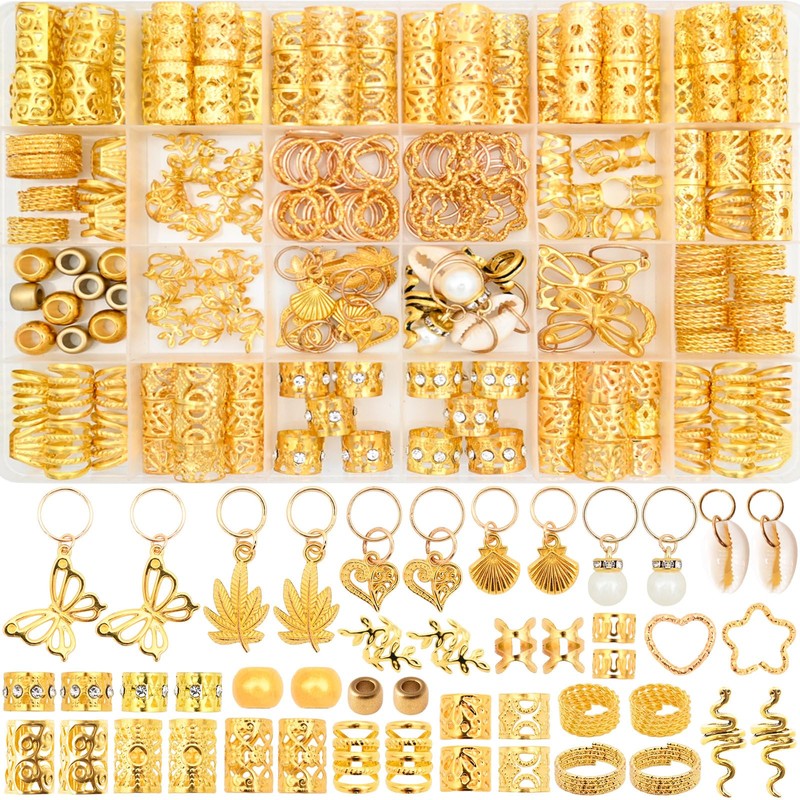 - 【Value Hair Accessories Set】: You will receive 236pcs braid hair accessories with storage box, hair accessories come in 25 most irresistible styles and sizes . 12x hair pendants (butterfly, maple leaf, shell, pearl, heart), 20x DIY hair accessories (star, heart),10x rhinestone headbands, 15x leaf headbands, 10x hollow gold hair accessories, 2x gold snake headband rings, 62x braid rings (hair rings, braid accessories, layered scratch rings), 105x gold dreadlock cuffs, a pack of lovely hair charms