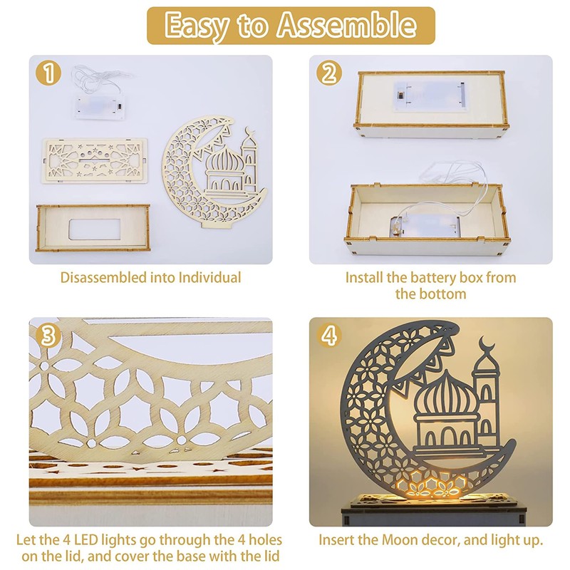 - 【Easy to Assemble】Ramadan decorations for home lights are made of half-moon shaped wood with colour design of the original wood. You can enjoy the fun of hands-on assembly. If you are not satisfied with our Ramadan lights decorations, please feel free to contact us, and we will refund or resend it to you within 24 hours.