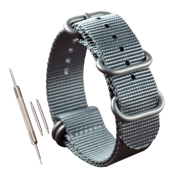 23mm Grey Nylon Watch Strap Band Replacement Men's Nylon Bracelet Wristband 5 Rings