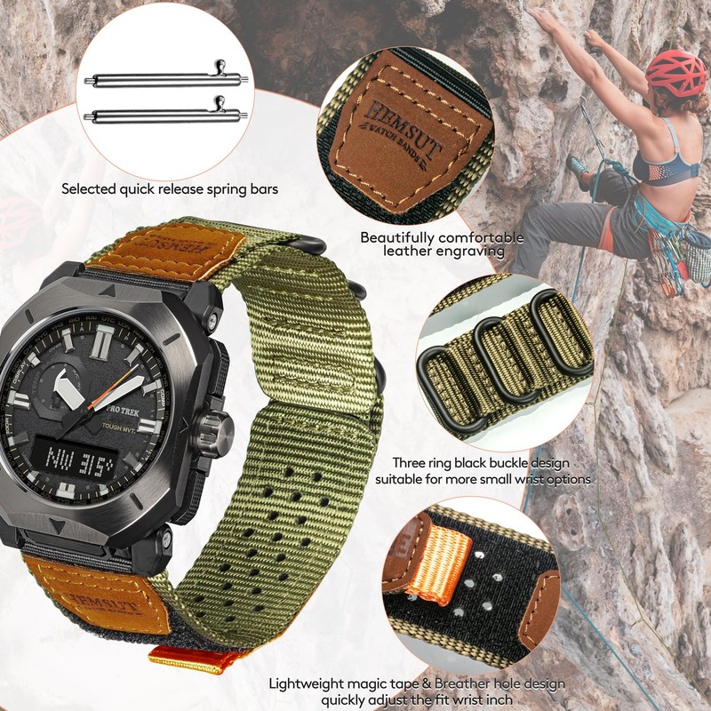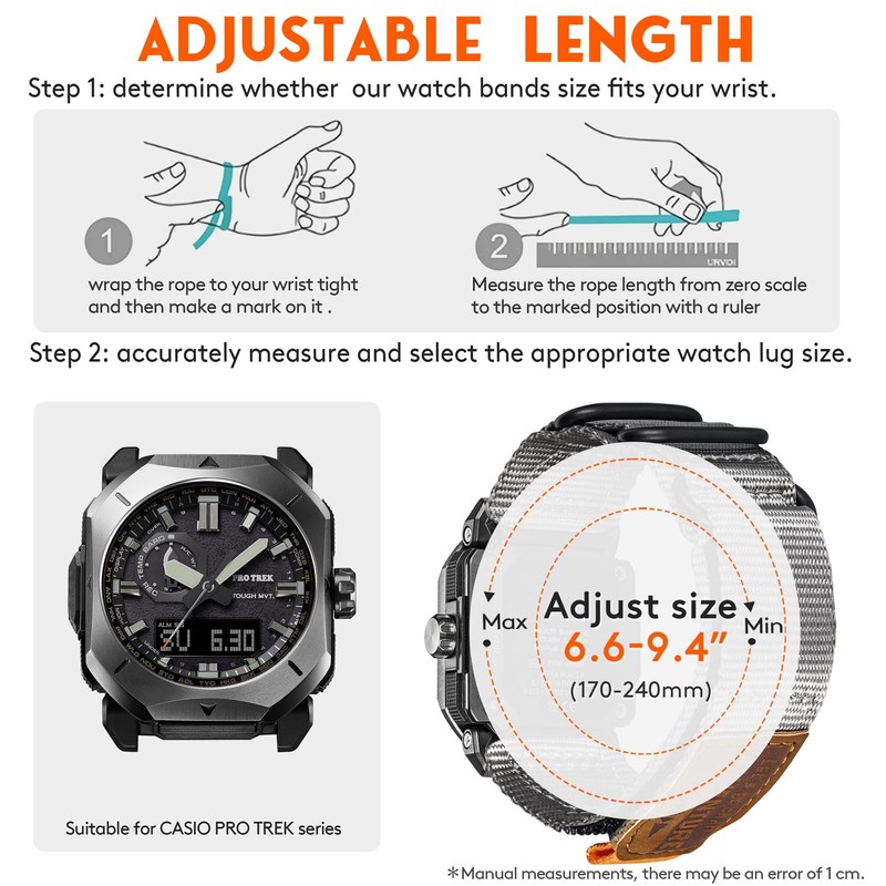 • 【Quick Release Casio Bracelets】Casio pro trek Sports nylon replacement wristband is easy to install and remove. Please choose the right size according to your wrist length.Suitable for wrist size 6.6''-9.4''(170mm-240mm).