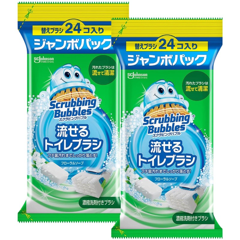 スクラビングバブル 流せるトイレブラシ フローラルソープの香り 替えブラシ ジャンボパック 24コ入り (2セット オリジナルおみくじカード付き)