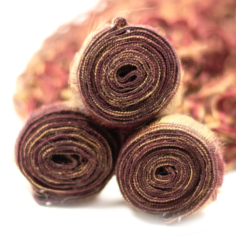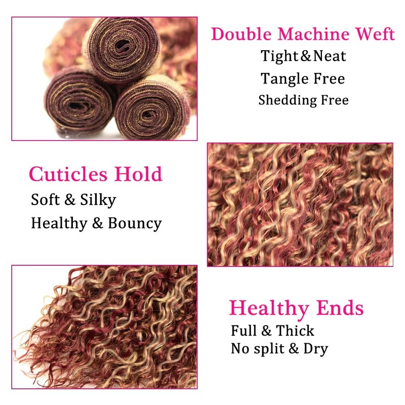 - 3.Human Hair Extensions Color:P99J/613 Kinky Curly Human Hair Bundles,Two Tone Burgundy Mixed With Blonde Human Hair Bundles.
