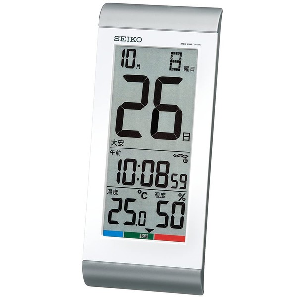 セイコークロック 置き時計 目覚まし時計 掛け時計 電波 デジタル 日めくりカレンダー 温度湿度表示 銀色メタリックメタリック 本体サイズ:24.2×10.5×2.5cm SQ431S