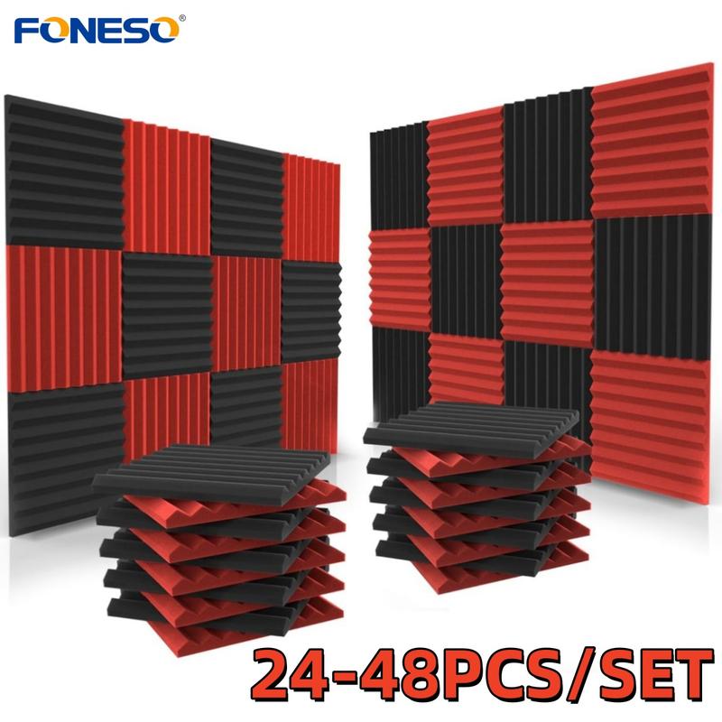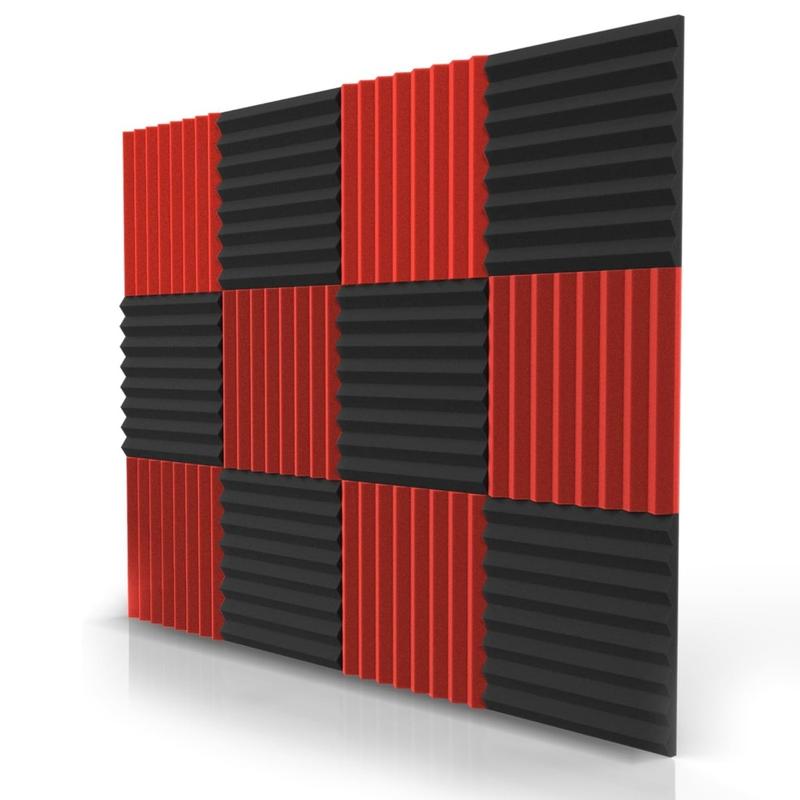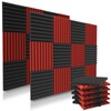 24-48 Pack Red&Black Acoustic Foam Panels Set, 1" x 12" x 12" Wedges Tiles Fireproof Soundproof Foam, High-density Sound Insulation Sound Absorbing Noise Cancelling Foam Panels for Recording Studios, Home, Offices Walls Ceiling, Gaming Room Accessories -