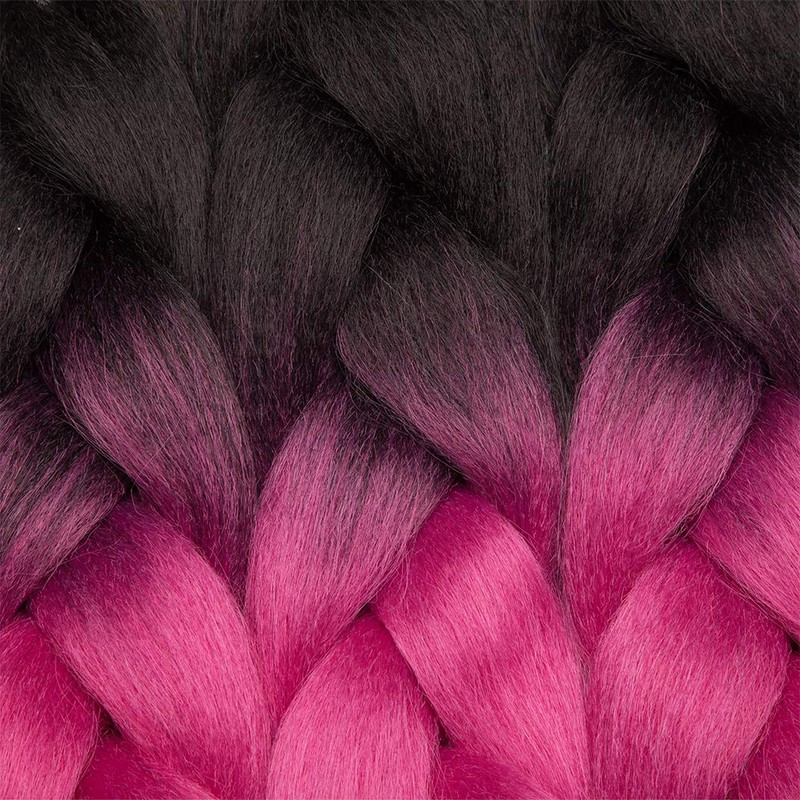 24"/60CM Crochet Hair Braiding Hair Extension Wavy Ombre Synthetic Crochet One Piece 100g Hair Braid - Black & Rose & Light Purple