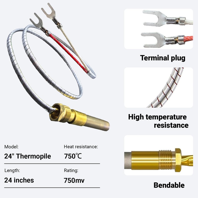 24 " 750 Millivolt Thermopile Generator, Universal Replacement Thermocouple Q313A for Gas Water Heaters, Fireplaces, Ovens, Fryers & Grills, 24" High-Temperature Resistant Sensor with Aluminum Wire