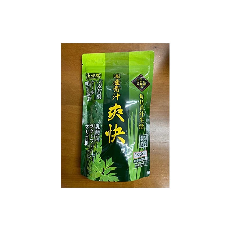 「国産青汁 爽快」は、厳選した新鮮な九州産青汁をはじめ、乳酸菌、ラクトフェリン、オリゴ糖、さらには食物繊維を加えた栄養機能食品です。 (お召し上がり方) 1日1~2包を目安に1包を100ml程度の水またはぬるま湯、牛乳などによく溶かしてお召し上がりください。 コップや湯飲みに粉末を先に入れ水や牛乳を注いで粉末が沈んでから素早くかき混ぜると、きれいに混ざりやすいです。