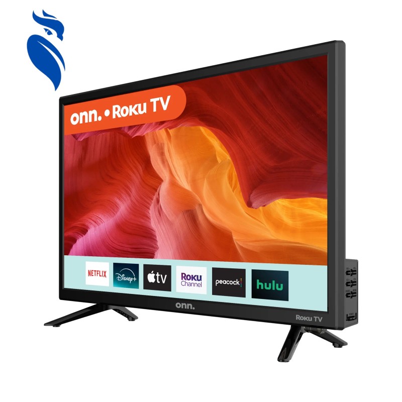 - What's in the box? 1 onn. Roku TV 24”, 1 Roku TV remote control (batteries included), 1 Quick Start Guide, and 1 TV stand + hardware