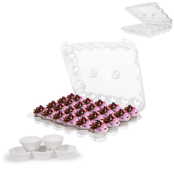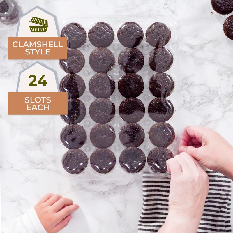 24 Compartment Mini Cupcake Containers, Set of 5 Disposable Plastic High Dome Lid Cupcake Boxes for Transporting Small Cupcakes with Tall Icing