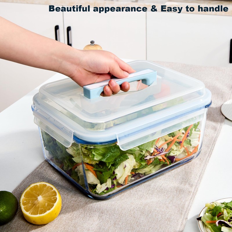 24 Cup Extra Large Glass Storage Containers with Airtight Locking Lid with Handle, Large Glass Food Storage Container, Ideal Storing food, Vegetables, Fruits, Roasting Turkey, BPA Free Oven Safe