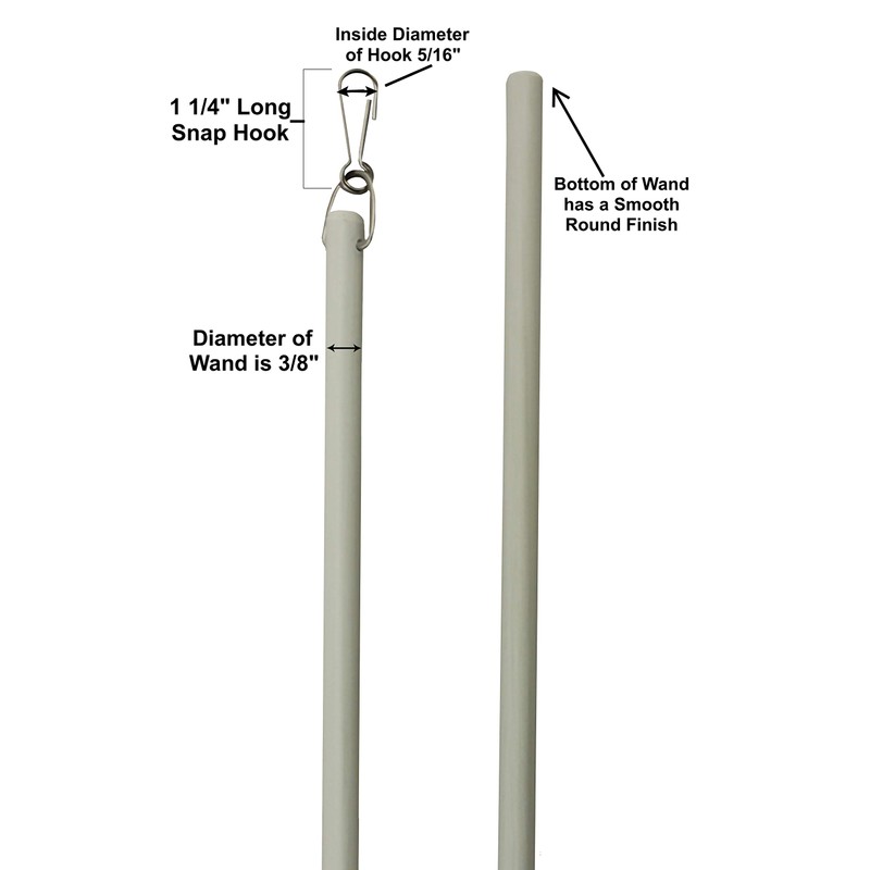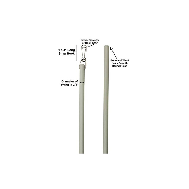 24" Fiberglass Drapery Baton Curtain Wands with Stainless Steel Snap Hook - Our Strongest! (2-Pack)
