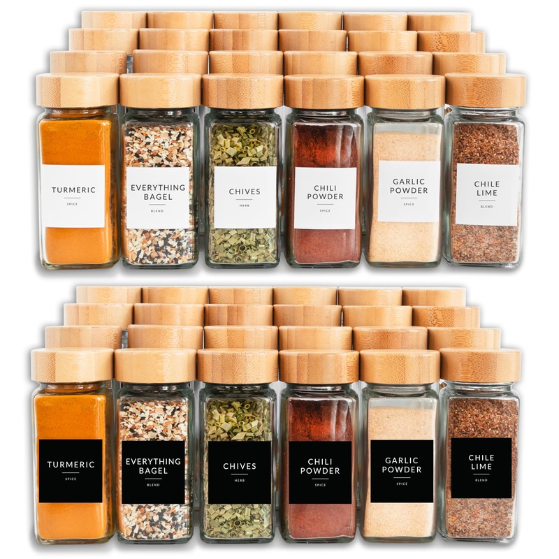 | Material Type: | 24 Glass Spice Jars with Bamboo Lids |