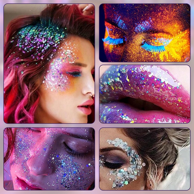 24 Glitter Faces, Colours Festival Glitter, Festival Face, Glow in the Dark