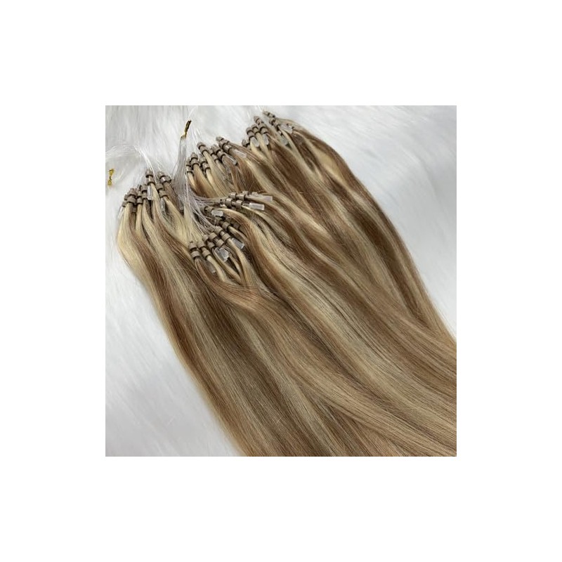 24'' Hair Extensions Micro Loop Rings Beads Human Hair Extensions Remy Hair Extensions Double Drawn - 1g/s 50s/pack - (24" #M12/613 Light Brown/Light Blonde Mixed)