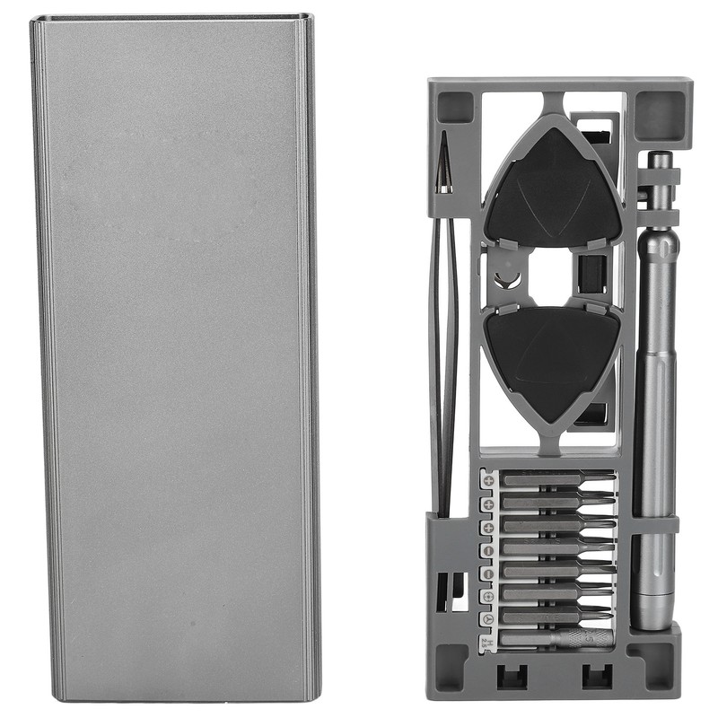 1、24 in 1 Set: 24 in 1 set, containing 1 batch rods, 16 bits, 4 card boards, 1 card pin, 1 crow bar, and 1 tweezers. 2、Compact Structure: The overall structure of the suit is more compact, and the simple push type inner box can be opened with one click. 3、Strong Magnetic Storage Slot: This is a bits suit with a strong magnetic storage slot, which does not fall when standing upside down. 4、360° Rotating Nut: This set has a 360° rotating nut, which is comfortable to hold and easier to disassemble. 5、Built in Strong Magnet: Built in strong magnet in the batch rod joint, and the bit is inserted into the aluminum alloy batch rod, which can be tightly adsorbed.
