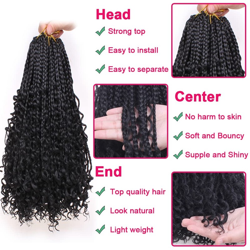 - Features: Messy Goddess Box Braids Crochet Hair Curly Ends is 100% Handmade, natural looking, Individually Pre-looped,so it is super easy to install. Especially for beginners wanted to do hair braids by their own, Which will save much more time and money to make the hairstyle.