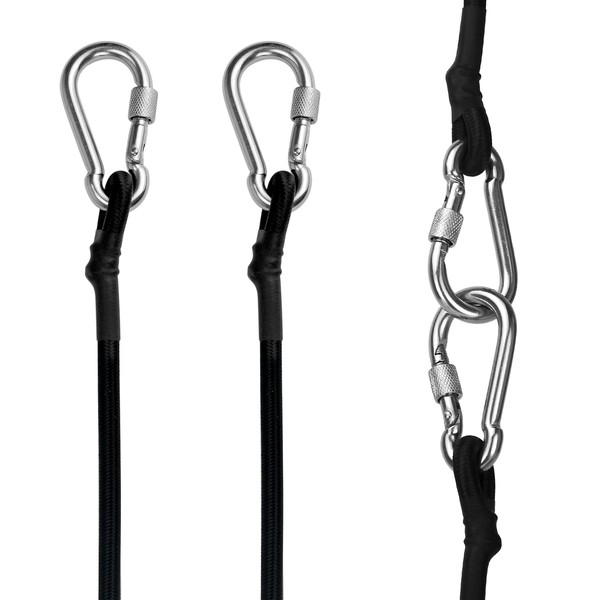 2 pack black heavy-duty bungee cords with carabiner hooks 24"