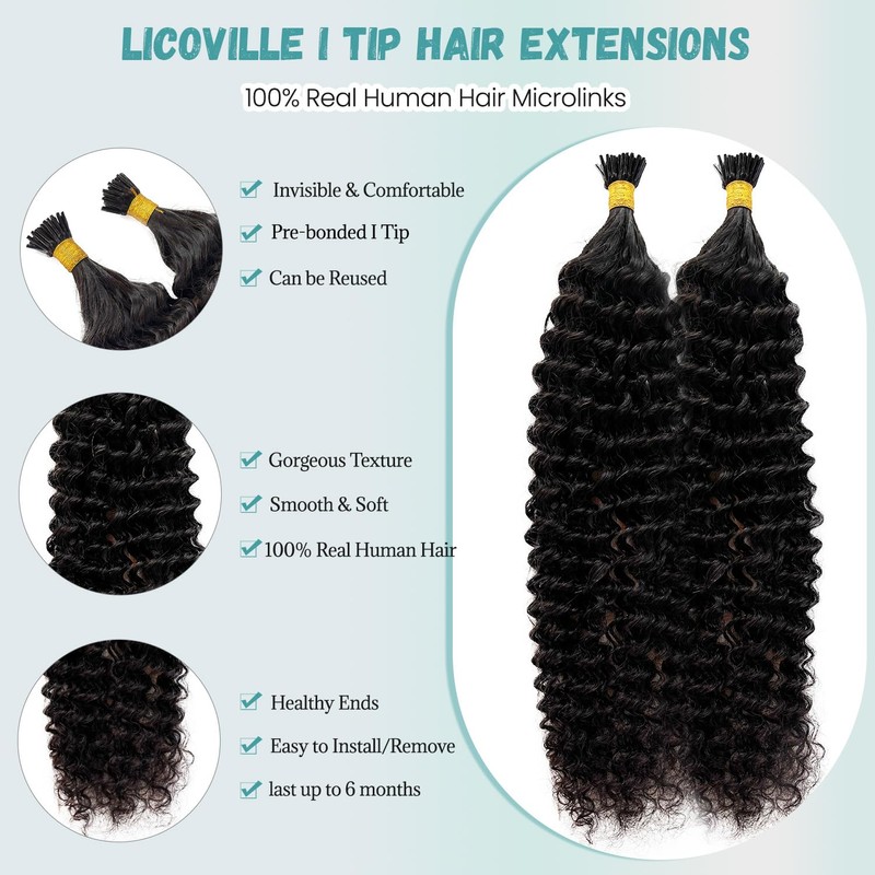 - 【Hair Material: I Tip Kinky Curly Hair Extensions Real Human Hair】 Licoville i tip kinky curly hair extensions are made from 100% unprocessed remy human hair for a natural look and feel, super soft to the touch, i tip kinky curly real hair extensions last 2-3 months and you need to re-flattening the beads every 1-2 weeks