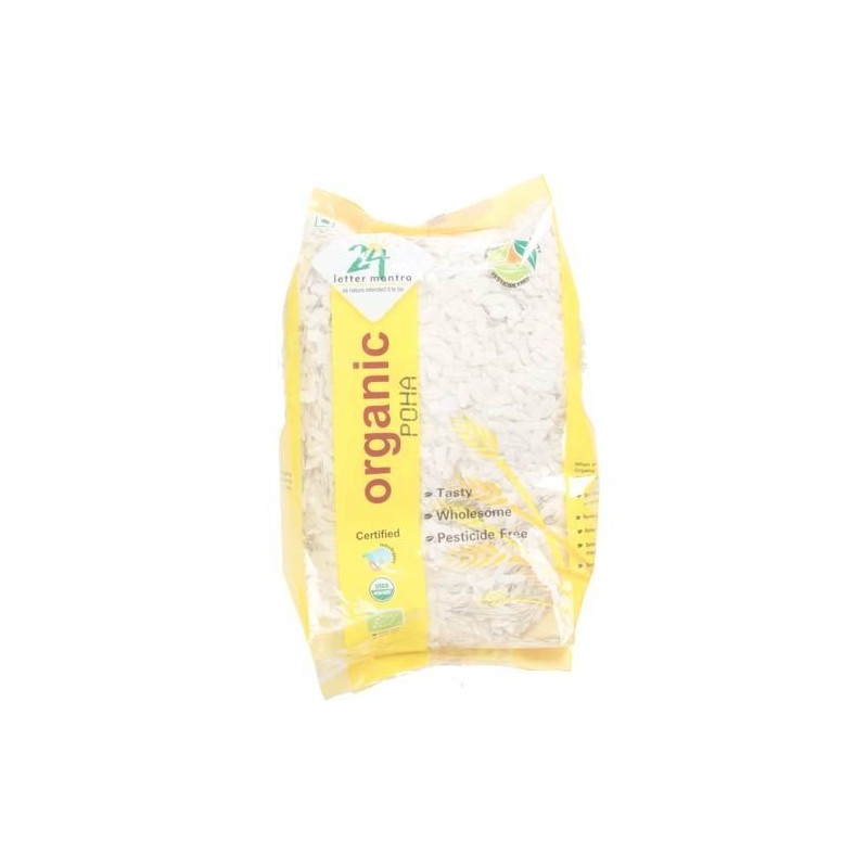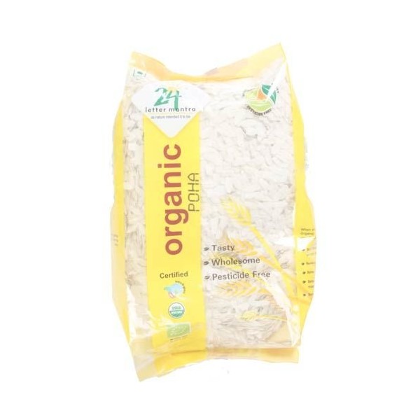 24 Letter Mantra Organic Beaten Rice, Poha White, 2 lb (Packaging may vary)