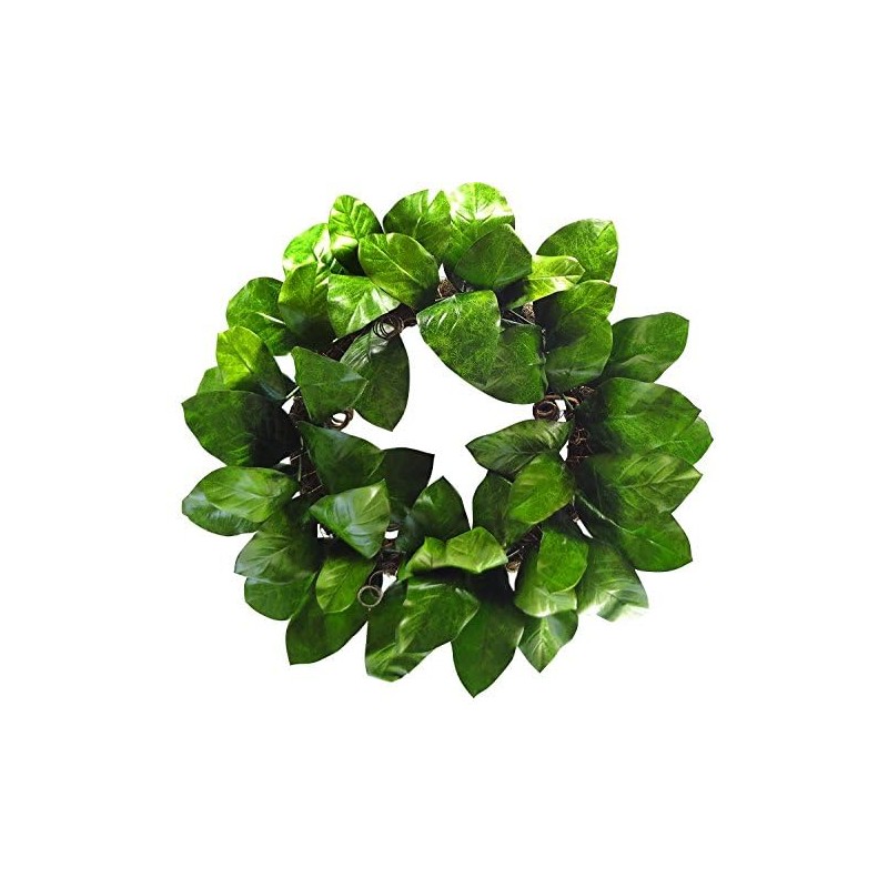 - The silk magnolia leaves wreath is expertly crafted to closely resemble real magnolia leaves, featuring rich green hues and lifelike textures. These artificial leaves are perfect for home decoration, as their soft and vivid imitation makes them look remarkably realistic, providing a fresh, natural appearance. Their high quality makes them popular for various home and wedding decor styles, particularly those with rustic or farmhouse themes.