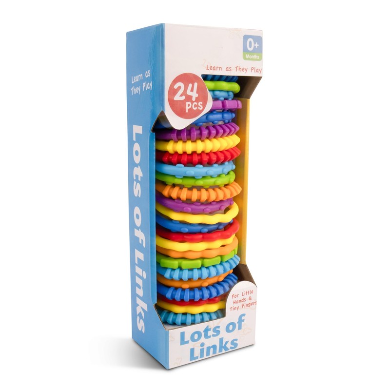 - Each linkable ring is designed to stimulate your baby’s senses with vibrant colours, diverse textures, and gentle rattling sounds. These features encourage visual tracking, auditory response, and tactile exploration. It’s a multi-sensory learning experience in one engaging toy.