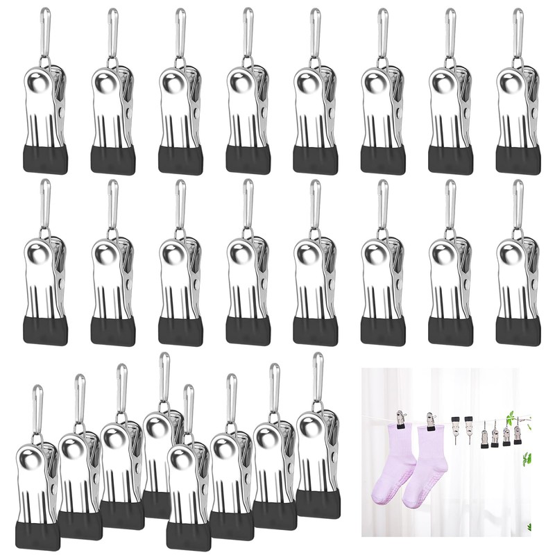 24 Pack Clothes Pegs For Washing Line, Stainless Steel Laundry Pegs Storm Pegs Black Hanging Clips with Hooks for lothes Jeans Socks Towel Photos