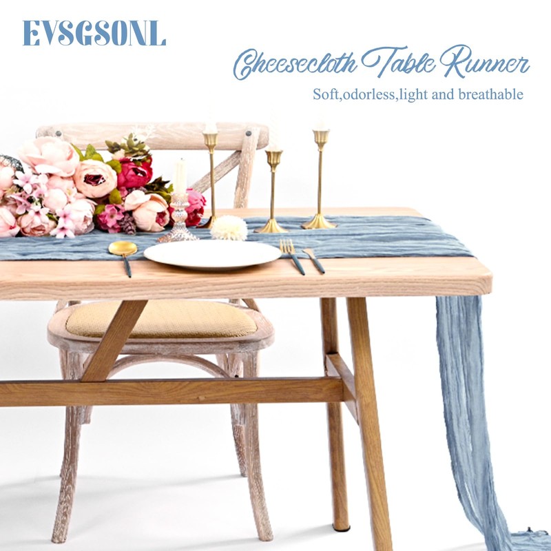 - 🍁Sufficient Quantity:24 Pieces dusty blue gauze cheesecloth table runner, made of premium polyester material,delicate and soft,durable,light and breathable.Sufficient quantity can meet your needs for your wedding banquets party decor,daily use or replace.The natural wrinkles texture full of design sense and do not need to be ironed. Add a high end looking to your table and perfect for boho rustic themed party.