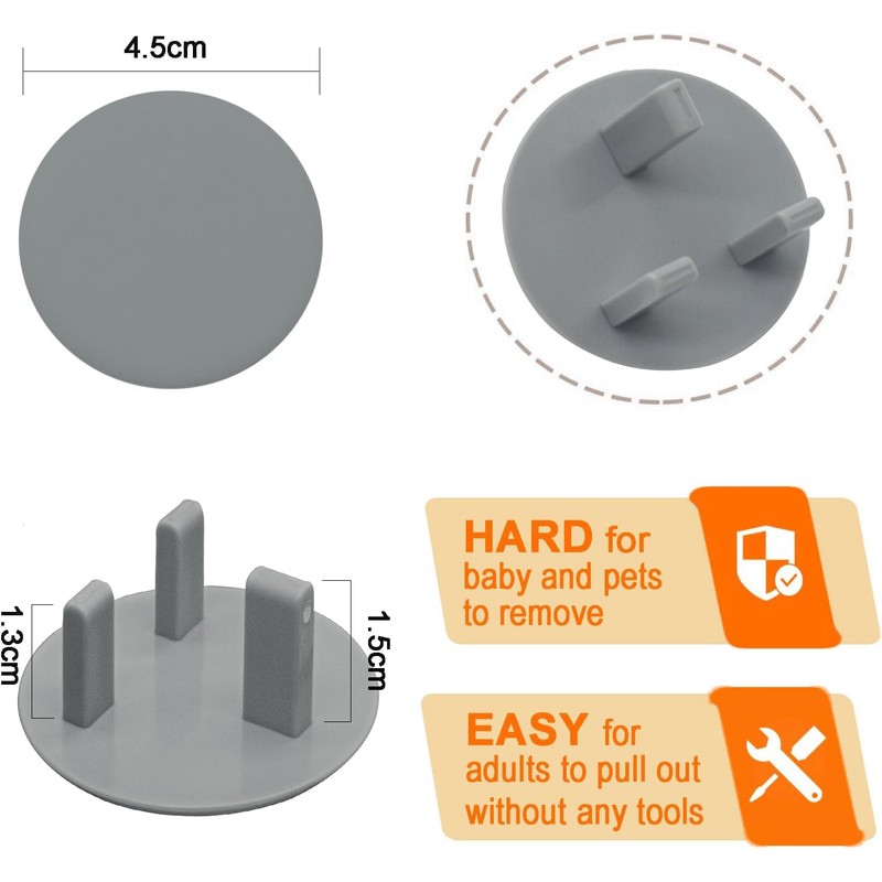 24 Pack Grey Plug Socket Covers UK, Child Baby Plug Socket Covers for Sockets UK