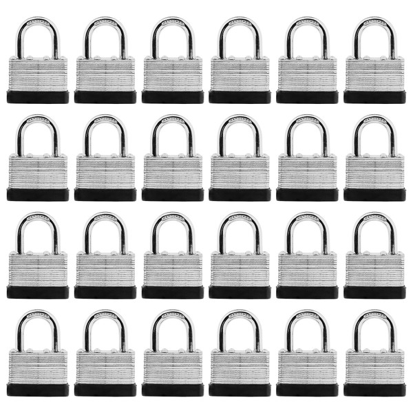 24-Pack Keyed Alike Laminated Steel Padlocks Keys, 1-3/4" Wide, Heavy Duty Pad Lock Set with Same Keys
