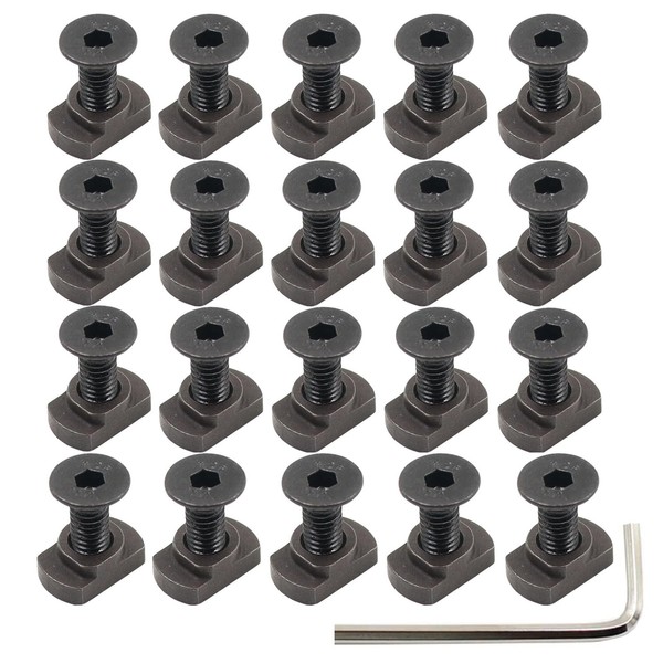 24 Pack M4 Mlok T-Nuts & Screws Replacement Sets Steel, for Mlok System Accessory Installation, with Allen Key. (M4-Countersunk Head)