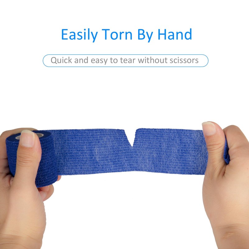 - 【Wide Application】The self adhesive bandage wrap tape is good for compressing a injury to relieve swelling, ideal for strains or sprains. Athletes like to use the sports athletic tape on their wrists, fingers, ankle to stabilise for protection. Elastic self adhesive tape is great for stay in place on our furry pets, like dog or cat, and won't stick fur.The self adherent cohesive wrap bandages also do good job in wrap tattoo grip cover, bottle to prevent slip.