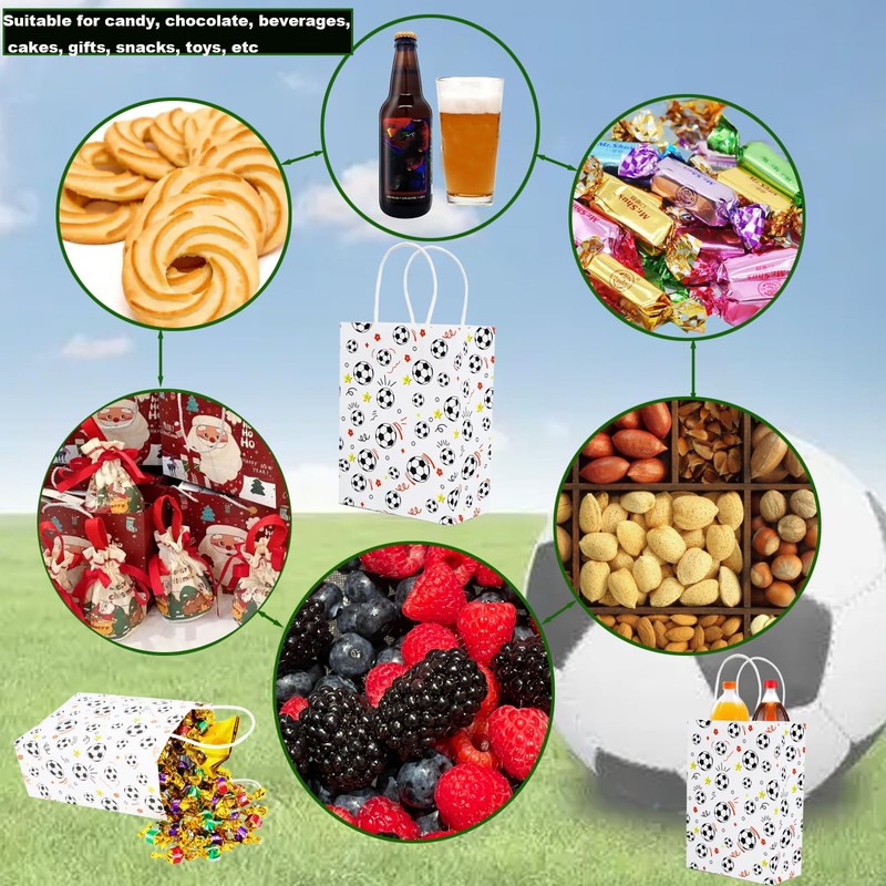 - Size: Measuring 8.2 x 5.9 x 3.1 inches,you will get a set of 24 soccer party favor bags,the soccer snack bags perfectly proportioned dimensions,neigher overly bulkly nor awkwardly compact