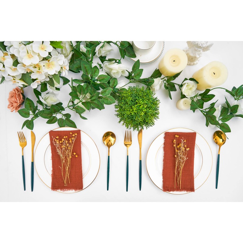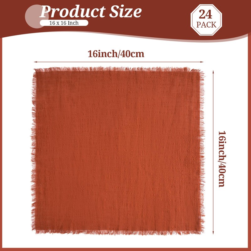 - 【Product Includes】: 24 pack terracotta cloth napkins. Each terracotta napkin measures 16inch/40cm. Taking a lot of time to handcraft, each napkin features elegant 0.5" fringe along the edges on all four sides, adding a rustic and vintage look to your table.