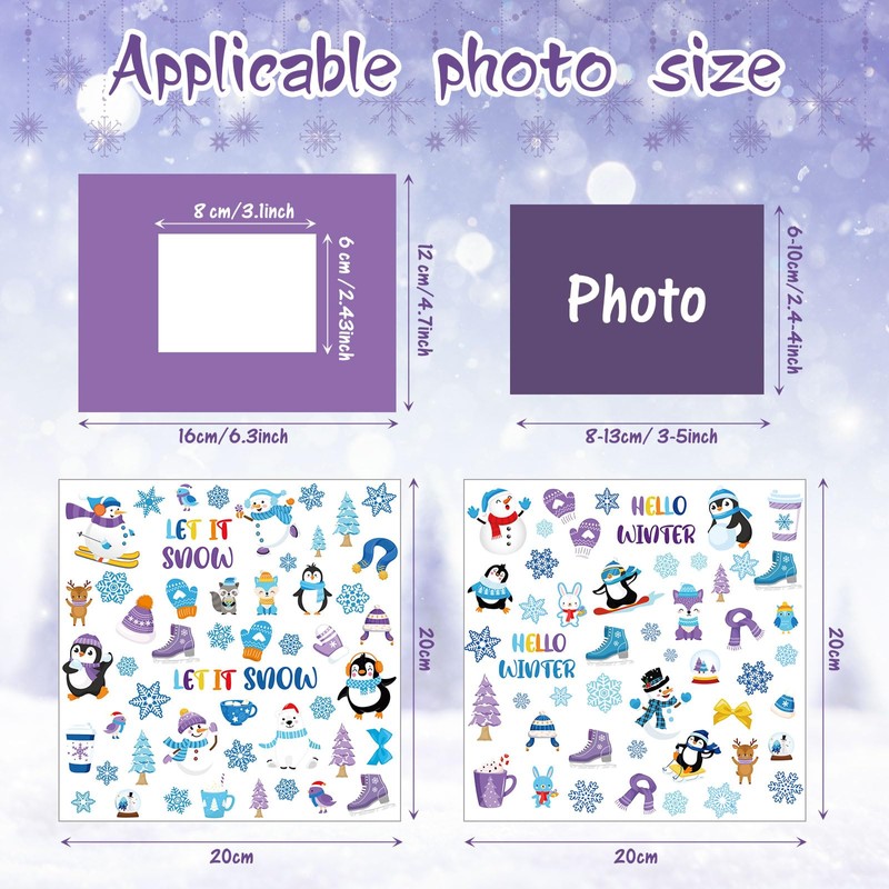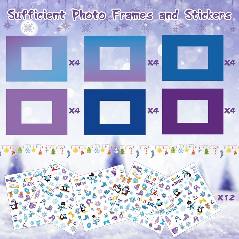 - Package Included: 24 sets of winter picture frame crafts, which are designed in attractive styles, and come with 12 sheets of multiple self adhesive color stickers for DIY, can DIY as like, adding a touch of winter joy to your room with cute photo frames