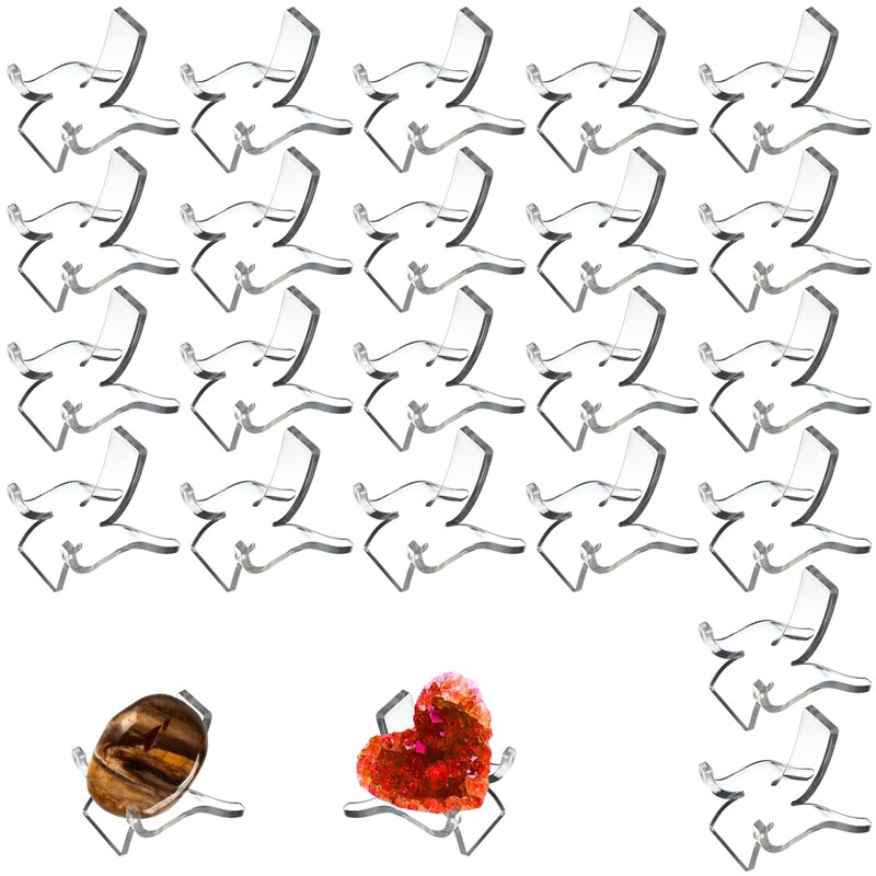 24 Packs Clear Triangle Display Stand, Acrylic Display Easel Stands Pedestal, Small Collectibles Display Stands for Geodes Rock Mineral Agate Fossil Coral, Home, Office Art Class, Museum (Small)