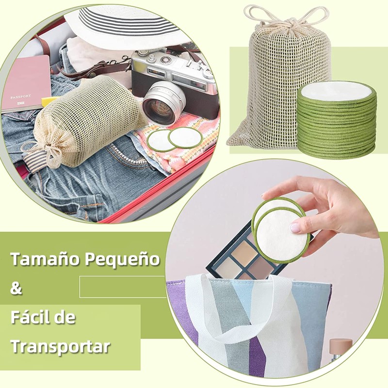 - 🌿【Cuida Tu Piel】No te encantaría sentirte fresca y limpia en cuestión de segundos? Estas pads redondos se pueden utilizar con desmaquillante para borrar suavemente el maquillaje y la suciedad. Ya sea para quitar el rímel, la sombra de ojos, la barra de labios o el maquillaje resistente al agua. Nuestro set portátil puede ir en su bolsa de viaje para limpiar eficazmente la piel durante el viaje.