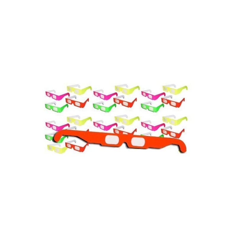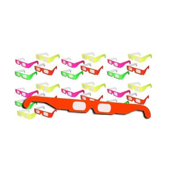 24 Pairs - NEON Prism Diffraction Fireworks Glasses - for Laser Shows, Raves - Each Pair is Individually Folded in a Clear Reusable Sleeve