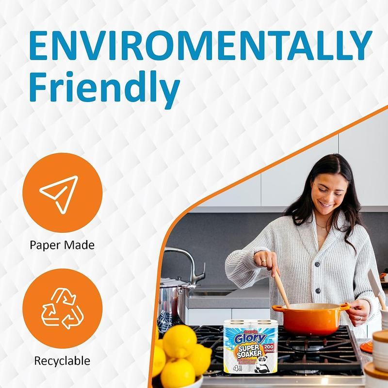 24 Panda Glory Super Soaker Kitchen Towels -2PLY Mega Absorbent Kitchen Paper Towel Roll with 200 Extra Thick Sheets-Multipurpose Kitchen Rolls (4 Pack of 6Rolls / 24 Rolls) Paper Wipes