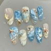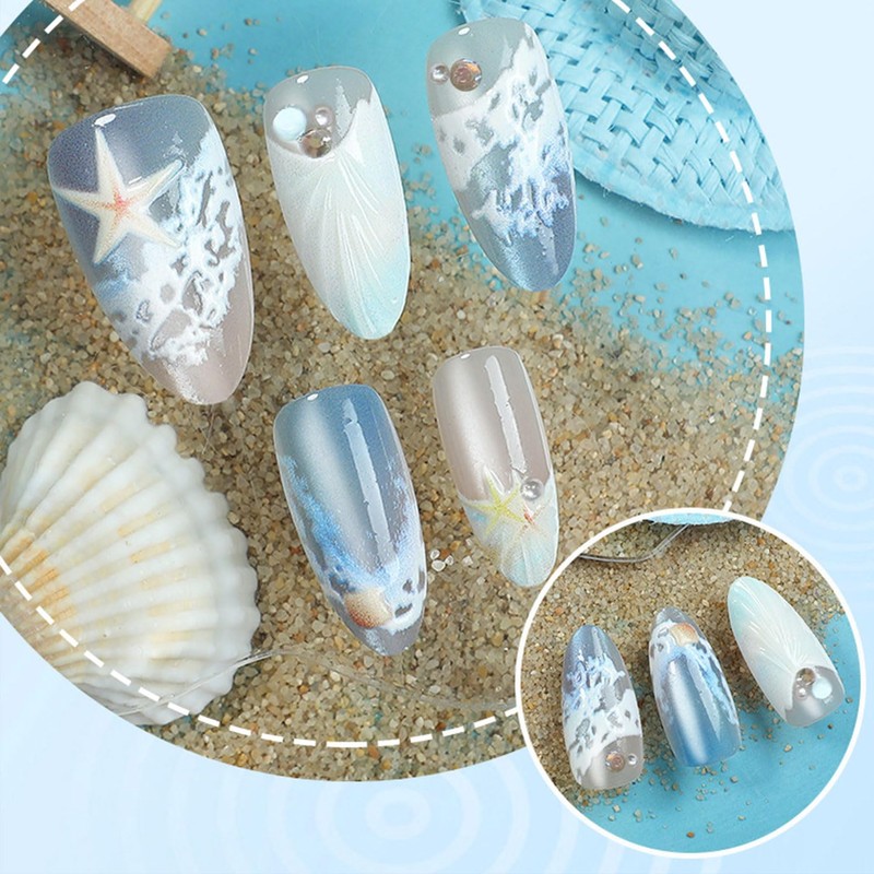 24 Pcs Almond Press on Nails Medium Shell Shaped Tip False Nails 3D Starfish ...