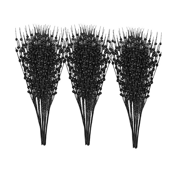 24 PCS Artificial Glitter Holly Berry Stem Ornaments Berry Picks Branches Glittery Bead Sticks for Christmas Tree Decorations Wreath Vase and Home Decor, Black