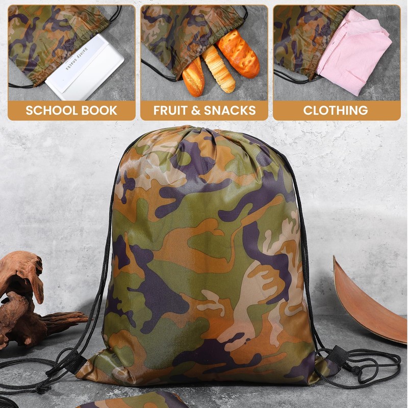 - Packaging Information: You will receive 24 pcs camouflage drawstring bag (13.39 x 16.54 inches / 34 x 42 cm), a sufficient quantity for daily use or replacement needs for your family, friends, and relatives.