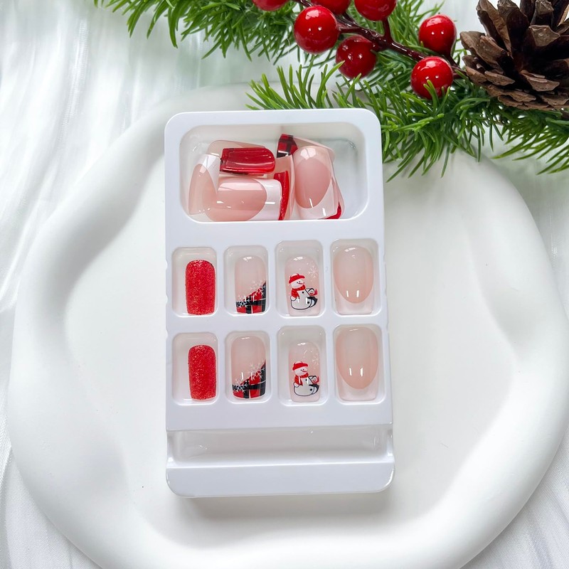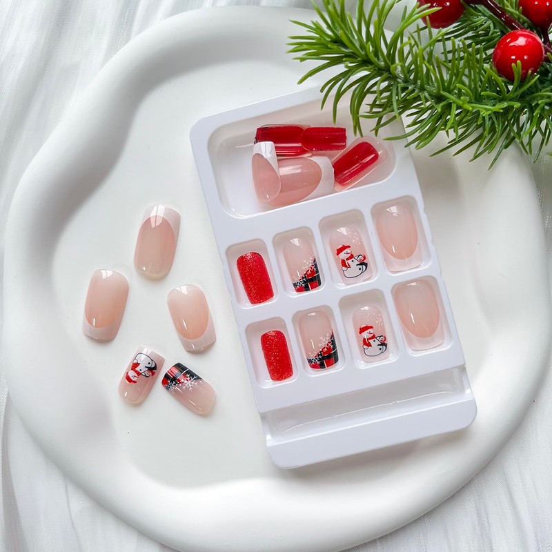 - ☃️【Comfortable to Use】Xmas press on nails are designed according to the curvature of women's nails, with moderate thickness, natural fit, more natural effect and comfortable use.