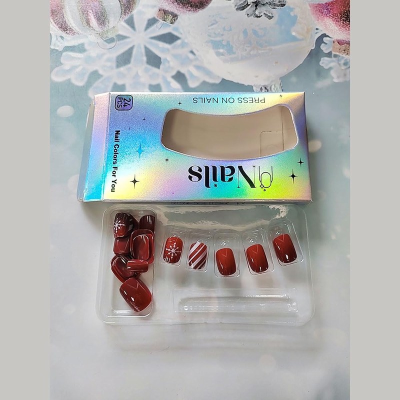 - Cute Press on Nails:There are 24 square press on nails in one pack,Beautiful and cute press on nails false nails comes with has 12 different sizes,you can chose them to bepolished to the most suitable size,it fits any finger perfectly.