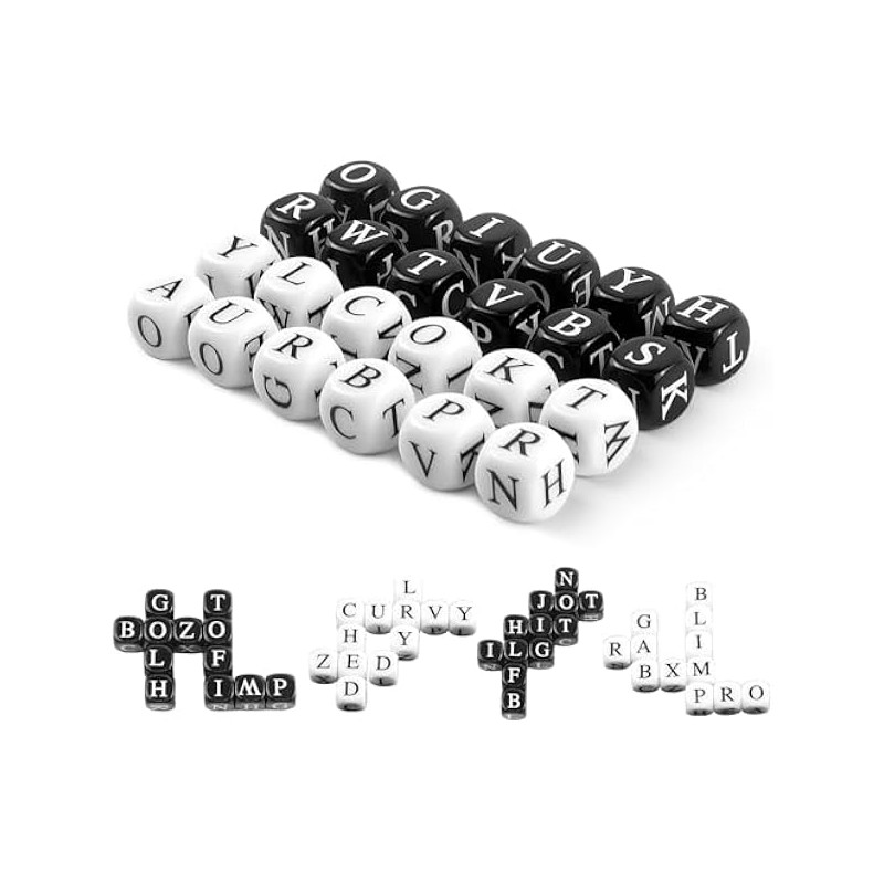 24 Pcs Dice Set, The Crossword Solitaire Game, 6 Sided Dice Crossword Creative Game, Two-Player Parent-Child Interactive Family English Letter Dice Games for Kids Adults