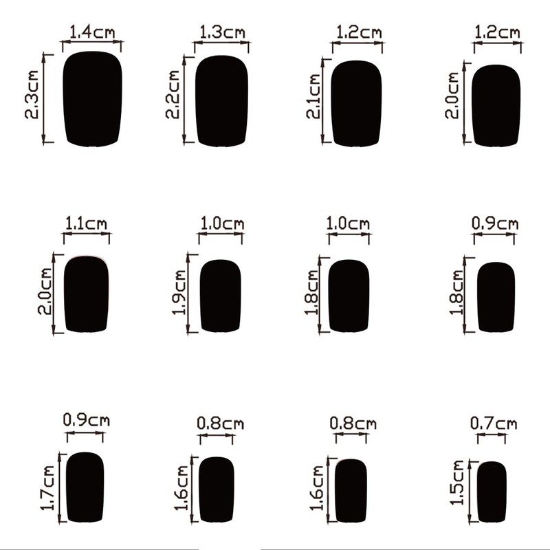- Package Include: You will get 24 Pcs fake nails, includes 12 different sizes, 24 pieces of jelly glue, 1 mini nail file,1 small wooden stick.You can choose the most suitable false nail for yourself, trim and file it into any length and shape you like