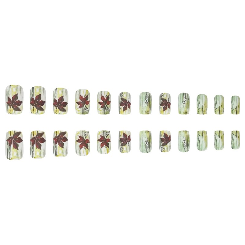 24 Pcs Fall Press on Nails Short Square Fake Nails White Matte Full Cover Glue on Nails Artificial Thanksgiving Nails Tree Patterns False Nails Autumn Maple Leafs Stick on Nails for Women DIY