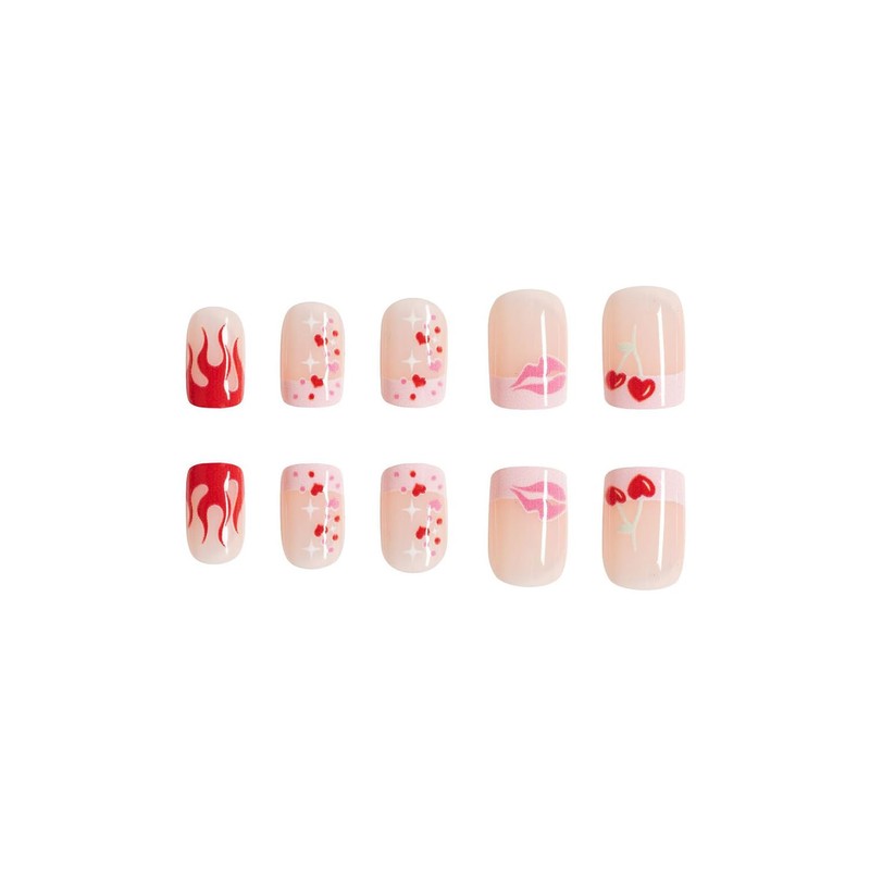 - Exquisite Design: Cute press on nails adapt to gentle color. The flame heart pattern embellishes vividly. Your perfect selection this holiday, helping you to express confidence and charms in daily life and work time. Classic square shape, more elegant and charming. You can also trim and file to your preferred length and shape.