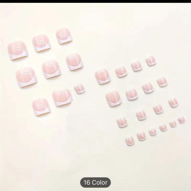24 Pcs Glossy Toe Nails Press On Nails False Nails French Style Feet Fake Nails Heart Pattern Artifical Reusable With Jelly Tabs