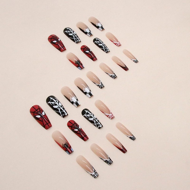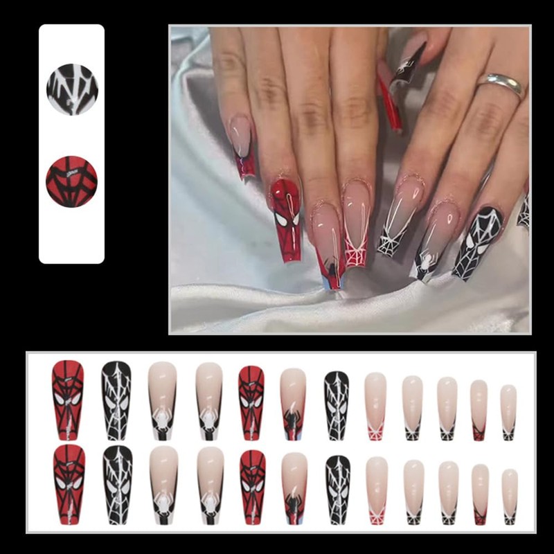 - 【Halloween Gifts】: Halloween super spider fake nails are the best Halloween gift to your girlfriend, wife, family or friends that will give them a unique and personalized manicure in minutes instead of waiting in line at the nail salon.